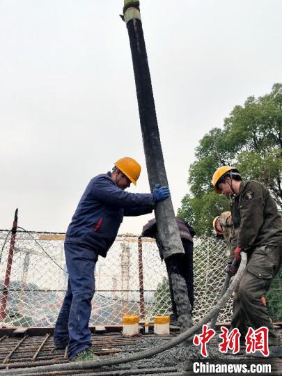 施工人員正在進行混凝土澆築工作。 戴志強 攝