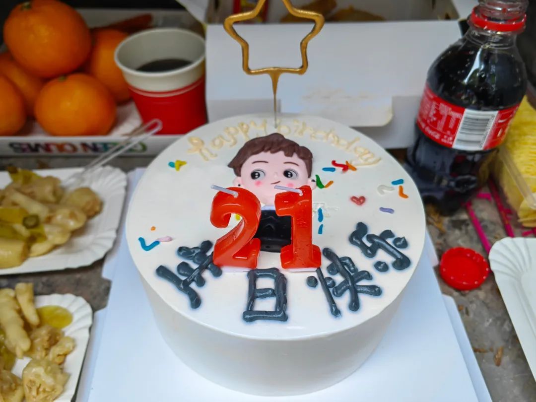 生日蛋糕上火紅的“21”