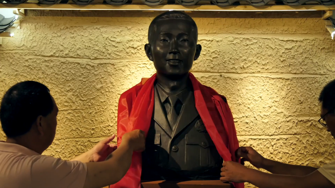 戰友們凝望着銅像