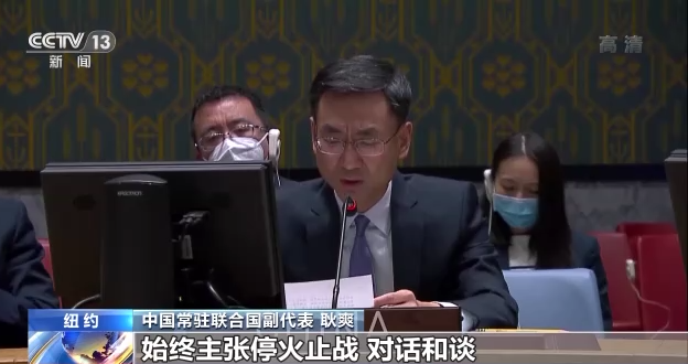 *中國常駐聯合國副代表 耿爽:*中方在烏克蘭問題上始終主張停火止戰,對話和談。從危機爆發之初,中方就一直強調政治解決是唯一出路。一味向戰場投放武器,不斷擴大武器使用的品種和範圍,只會加劇各方矛盾,延長並擴大沖突,讓普通民眾付出更大的代價。