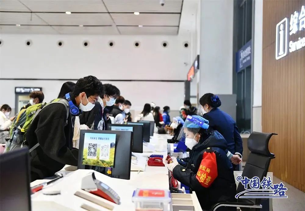 漢中車務段成立黨團員志願服務隊,在候車室增開學校售票點,組織管理人員和休班職工及時增補至關鍵崗位。