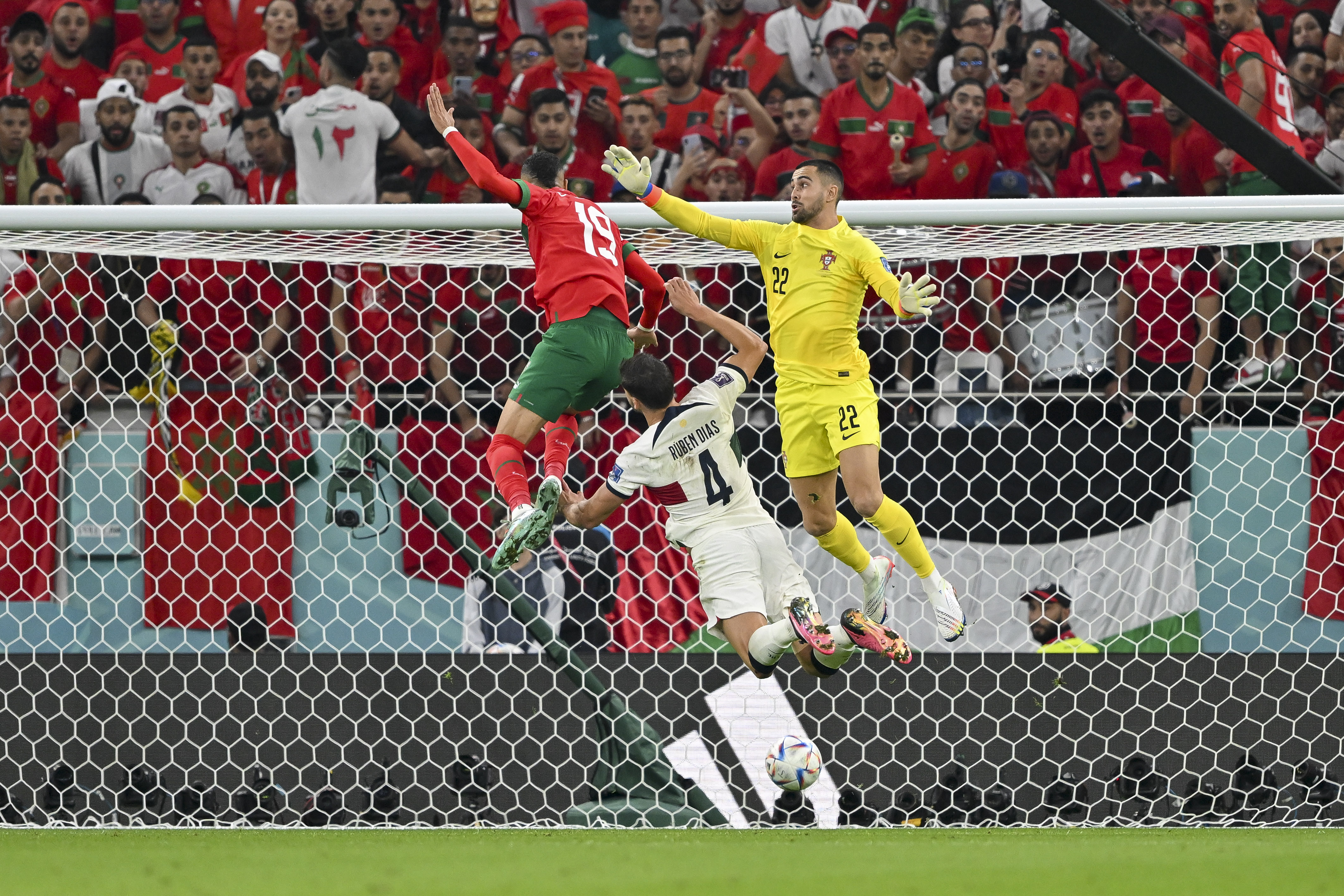但面對實力佔優的葡萄牙,殘陣出擊的摩洛哥隊爆發出驚人能量。他們雖以防守為主,但戰術並不保守,反擊中敢於投入兵力。第42分鐘,摩洛哥隊邊路策動攻勢,葡萄牙門將迪奧戈-科斯塔出擊失誤,恩-內斯里頭球破門,打破場上僵局。