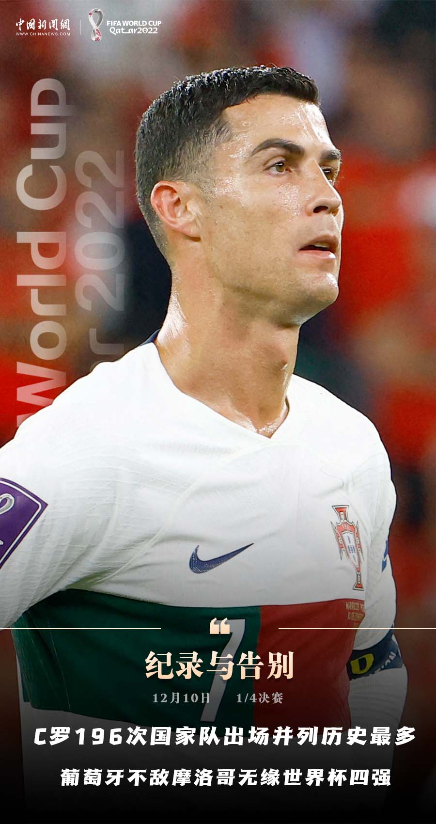 本屆盃賽,C羅成為首位在連續五屆世界盃中取得進球的球員。他曾表示,獲得世界盃冠軍是葡萄牙隊可以實現的目標。可在不知疲倦的摩洛哥人面前,瑰麗的夢想最終化為鏡花水月。