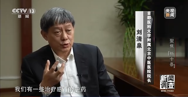 *首都醫科大學附屬北京中醫醫院院長 劉清泉:*我們有一些治療感冒的中藥,尤其是治療風熱感冒的,你看裏面的説明書,有疏風、清熱、解表、化濕、清瘟,具有這一類任何2—3個功效的中成藥物,我們都可以來服用。