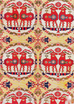 大量的考古資料證明,吐蕃統治時期的絲綢之路並沒有衰落,而是被充分開發和利用,為吐蕃政權服務。自20世紀80年代以來,青海都蘭縣、烏蘭縣及德令哈市境內的吐蕃時期墓葬,出土了大量的絲綢,多為唐代中原地區所織造,幾乎囊括了唐代的所有織物品種。另有一部分為中亞和西亞地區織造,以粟特錦居多。一些絲綢上裝飾有中亞和西亞的流行圖案,如對獅、對馬、對羊、對含綬鳥等,應該是唐朝專門為藩屬國家或邊境市場而定製的。墓葬中還發現大量兼有東西方文化要素的遺物,以金銀器數量最多、品類最雜,包括鎏金銀冠和金盃、鍍金銀舍利容器、鞍具帶飾、日用瓶罐杯碗、棺槨裝飾等。除了少量東羅馬金幣、薩珊銀幣和金銀容器是來自中亞、西亞和地中海地區的輸入品,大部分金銀器具應是吐蕃本土製作。從其工藝技術和裝飾紋樣上看,已經形成了吐蕃自己的獨特風格,其中明顯受到了唐朝、粟特、薩珊和突厥金銀器風格的影響。吐蕃墓葬中還發現了不少漆器,有的為本地製作,有的可能來自周邊的漢文化區,如河西、高昌等地。器物上的文字題記顯示,漢人和通曉古藏文的吐蕃人或吐谷渾人蔘與了這些器物的製造。很顯然唐朝的一些先進製作技術輸入到了這一區域,構成了本地手工業的一個組成部分。吐蕃還從中亞、西亞和南亞地區購入大量玻璃、寶石和半寶石飾物,將其廣泛應用於日用器物和貼身飾物上。綠松石裝飾尤其盛行,成為青藏高原族羣獨具特色的一種審美偏好。