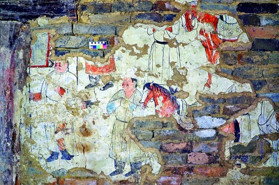 高原絲綢之路的繁盛景象還直觀地反映在大批彩繪木棺板畫上。這些棺板畫上所繪人物的服飾特徵、器物造型及生活方式諸方面,都深受中亞地區遊牧民族的影響,與粟特、突厥的文化面貌近似,可見吐蕃對這些地區的文化持開放包容和吸納融合的態度。