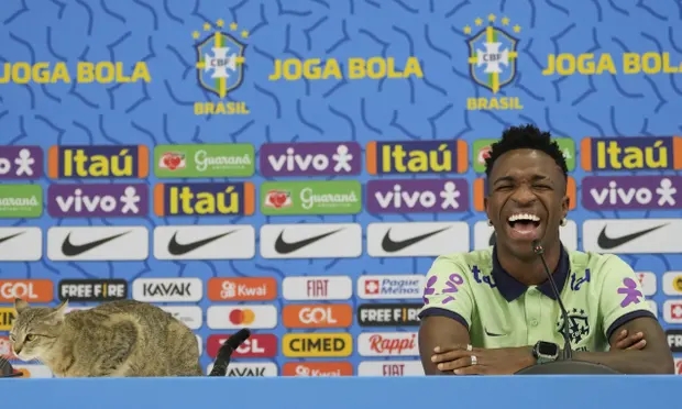 《衞報》還提到,“戴夫”並不是本屆卡塔爾世界盃唯一一隻引發媒體關注的貓。就在1/4決賽對陣克羅地亞隊賽前的巴西隊新聞發佈會上,一隻坐在巴西前鋒維尼修斯旁的貓出現在鏡頭前,不過隨後被現場球隊官員扔下了桌。