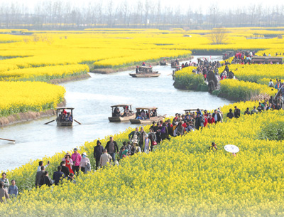 千垛旅遊發展有限公司負責人晏中和介紹,油菜花的花期一般只有20多天,為了延伸垛田旅遊時長,當地精心選育了早熟、中熟、晚熟三個品種的油菜花,目前花期已變為3月到4月下旬,多出來的10多天旅遊增收600萬元。