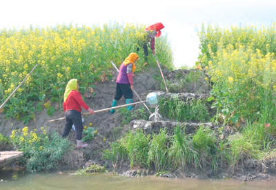由於垛田互相分割,無法大規模機械化作業,至今依然保留許多傳統的耕作方式。“每一茬結束後要用耙子鬆土,叫作劚(zhǔ)岸;春季農閒時,將底泥撈起來布到垛面增肥,叫作罱(lǎn)泥;夏天用水草或者草泥混合物修補垛面,同樣可以增肥。”楊懷壽告訴記者,這樣的垛田只需再補充有機肥即可,一般不使用化肥。
