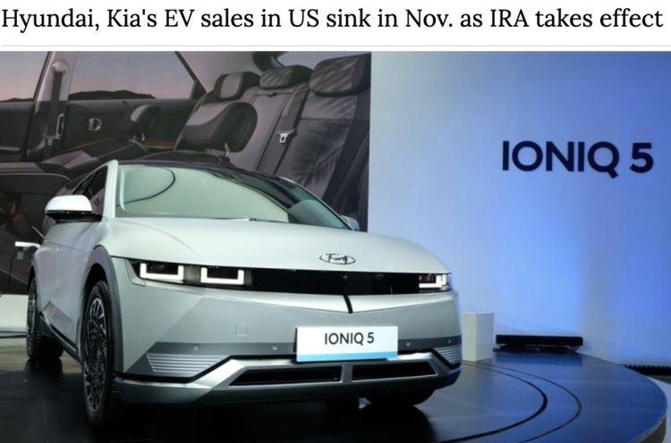 韓國汽車生產商本月初發布的數據顯示,韓產電動車11月在美國市場銷量鋭減。