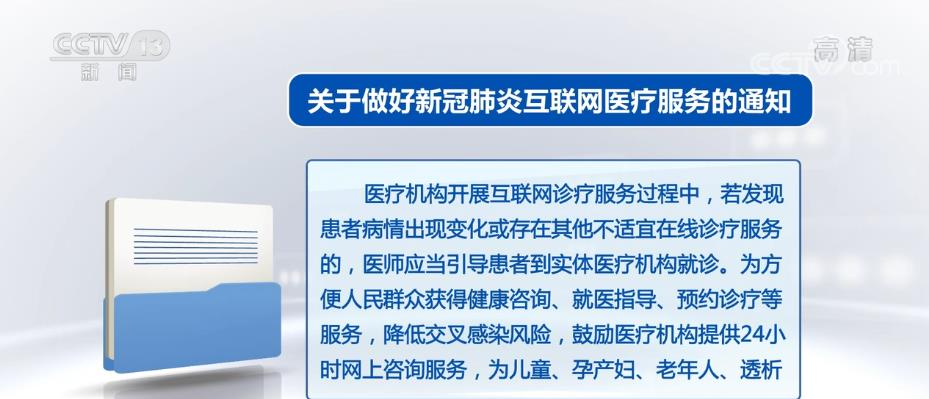 《通知》要求,醫療機構開展互聯網診療服務過程中,若發現患者病情出現變化或存在其他不適宜在線診療服務的,醫師應當引導患者到實體醫療機構就診。為方便人民羣眾獲得健康諮詢、就醫指導、預約診療等服務,降低交叉感染風險,鼓勵醫療機構提供24小時網上諮詢服務,為兒童、孕產婦、老年人、透析患者和合並基礎疾病的患者提供就醫及心理諮詢、用藥指導等服務,同時積極開展分時段精準預約,縮短患者到院後等待時間。