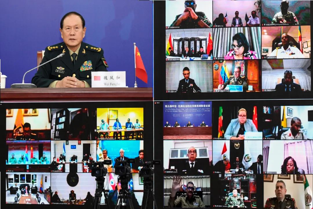 12月13日,第五屆中拉高級防務論壇以視頻方式召開。本屆論壇以“和平·合作”為主題,來自24個拉美和加勒比國家的防務部門和軍隊領導參會,國務委員兼國防部長魏鳳和出席會議並作主旨發言。