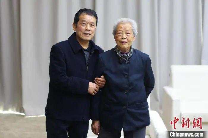 南京大屠殺倖存者艾義英和兒子黃興華。 泱波 攝