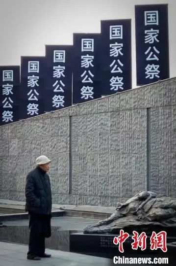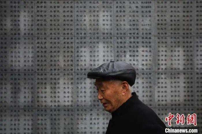 阮定東在侵華日軍南京大屠殺遇難同胞紀念館南京大屠殺遇難者名單牆前。泱波 攝