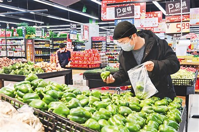 圖為日前,顧客在山東省青州市一家超市選購蔬菜。