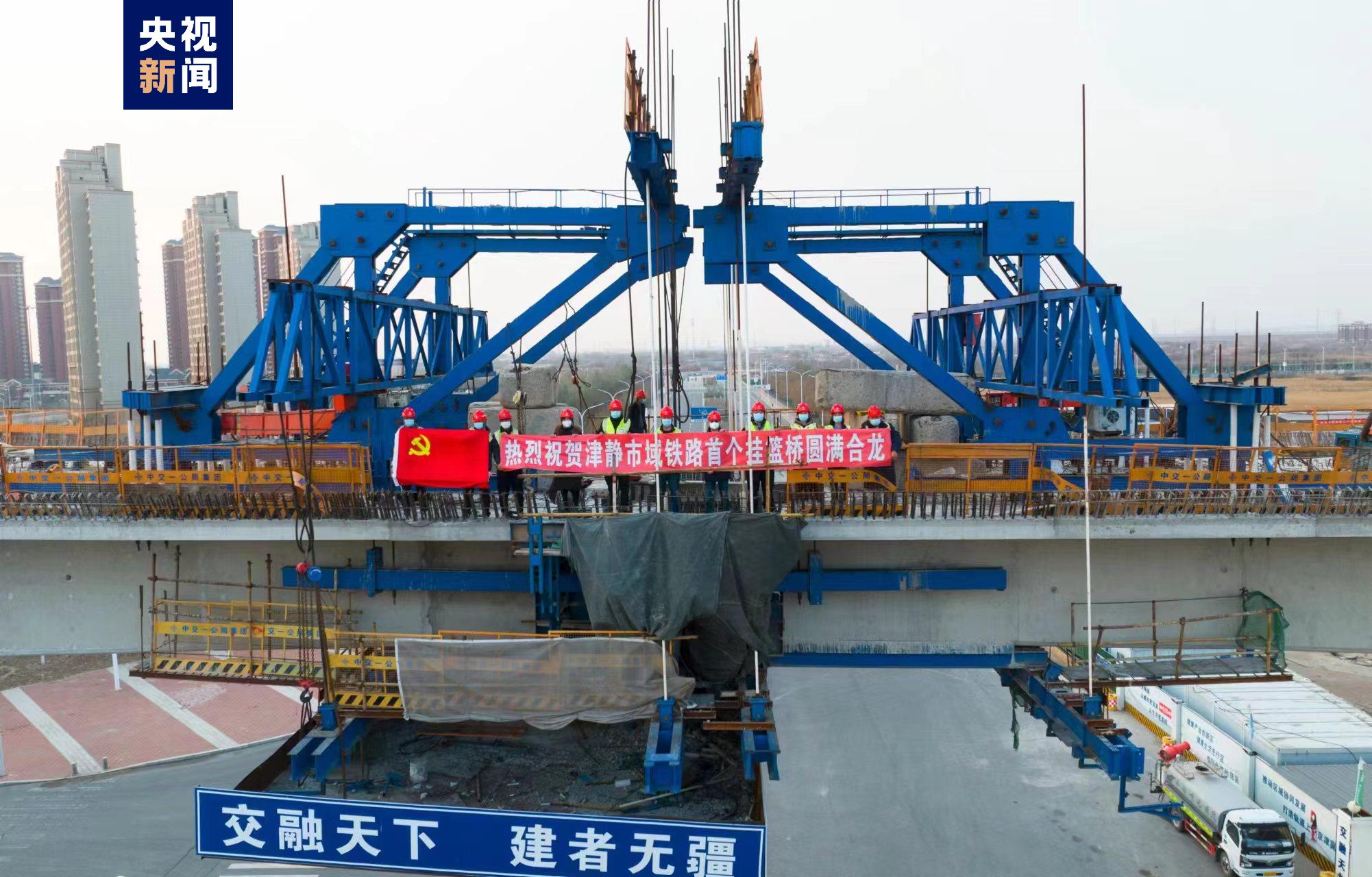 近日,津靜市域(郊)鐵路首開段工程首個懸澆梁合龍,關鍵架樑通道成功打通。