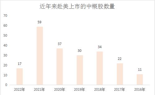 截至12月10日數據,全年僅有奧斯汀科技、金太陽教育、豪微科技、能鏈智電、大健雲倉、亞朵等17只中概股在美上市成功,數量大幅少於去年的59只,且為近5年來中概股上市最少的年份。