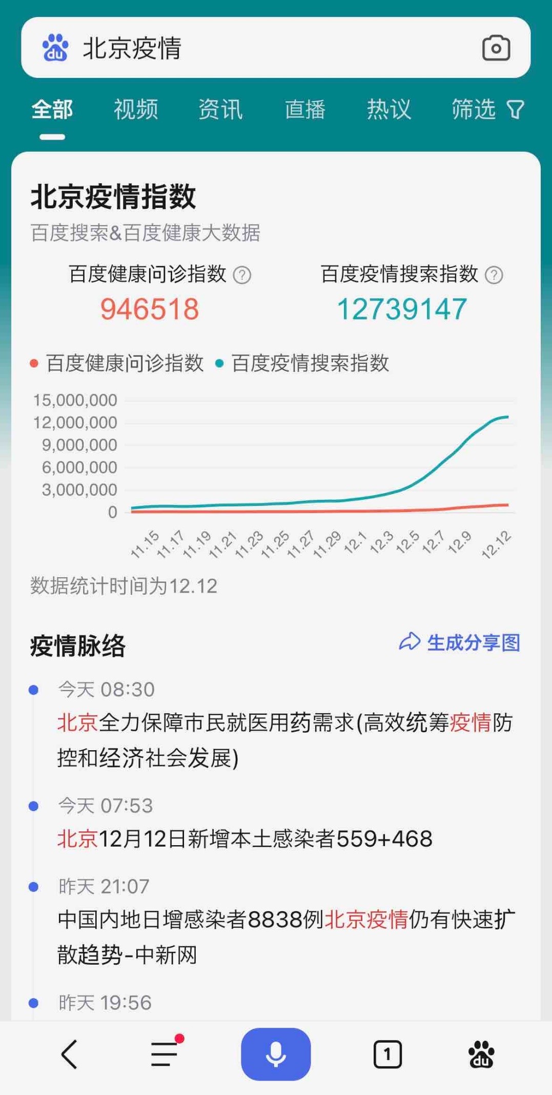 12月13日,百度APP正式上線“疫情指數”,該指數包括“百度健康問診指數”、“百度疫情搜索指數”兩大指數,覆蓋全國31個省市自治區(不含港澳台)的360多個城市,用户通過查詢“地區名+疫情”等關鍵詞,如“北京疫情”,即可瞭解疫情即時動態。百度APP月活躍用户高達6.34億,百度搜索每天響應數十億次的搜索請求;百度健康則是國內最主要的一站式健康平台入口之一。基於此,“百度疫情指數”將有助於從大數據層面,洞察全國各地大眾對疫情的關注度、健康狀況等,或為疫情未來趨勢研判提供重要參考。