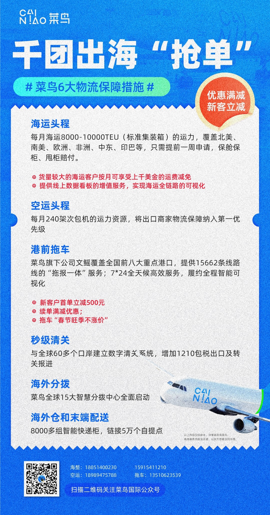 菜鳥公佈的國貨出海6大物流保障措施如下: