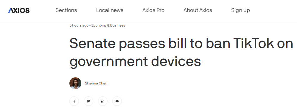 打壓不斷!美國參議院通過法案,禁止在政府設備上使用TikTok