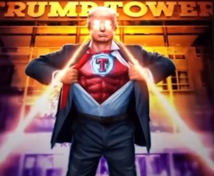 據《新聞週刊》報道,特朗普當天在社交平台上發了一段十幾秒的視頻。他在視頻剛開始説:“美國需要一個超級英雄!”緊接着畫面切換到他站在特朗普大廈前擺出一個看起來像是超人的動作——穿着西裝,雙手撕開西裝裏面的襯衫,露出紅色緊身衣,上面印有一個代表特朗普的字母“T”,雙眼隨後發出激光束。視頻最後轉為黑色背景,上面寫有“12月15日,週四,將有重大宣佈”的字樣。
