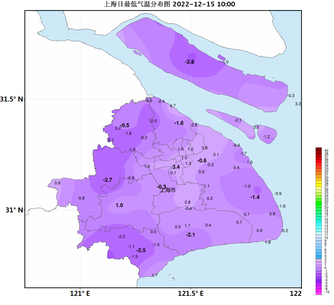 受到輻射降温的影響,今天早晨氣温偏低,市區徐家彙站在3.4度,郊區最低氣温跌破零度,局部有薄冰或冰凍。