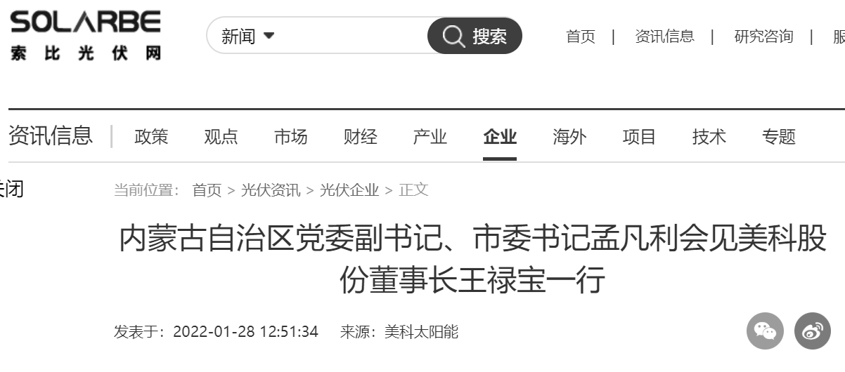根據招股書披露,“包頭美科硅能源有限公司三期20GW單晶拉棒項目”是美科股份本次上市的主要募投項目,計劃總投資40億元,以包頭美科硅能源有限公司為實施主體,在包頭市昆都侖區金屬深加工園區投資建設,項目建設完成後預計可新增單晶硅棒產能5.4萬噸/年(20GW)。另據在2022年1月公開報道的《內蒙古自治區黨委副書記、市委書記孟凡利會見美科股份董事長王祿寶一行》顯示,美科太陽能董事長王祿寶介紹了本次與昆區人民政府簽約的項目概況:包頭美科三期20GW單晶拉棒及10GW切片擴建項目,協議投資40億元。