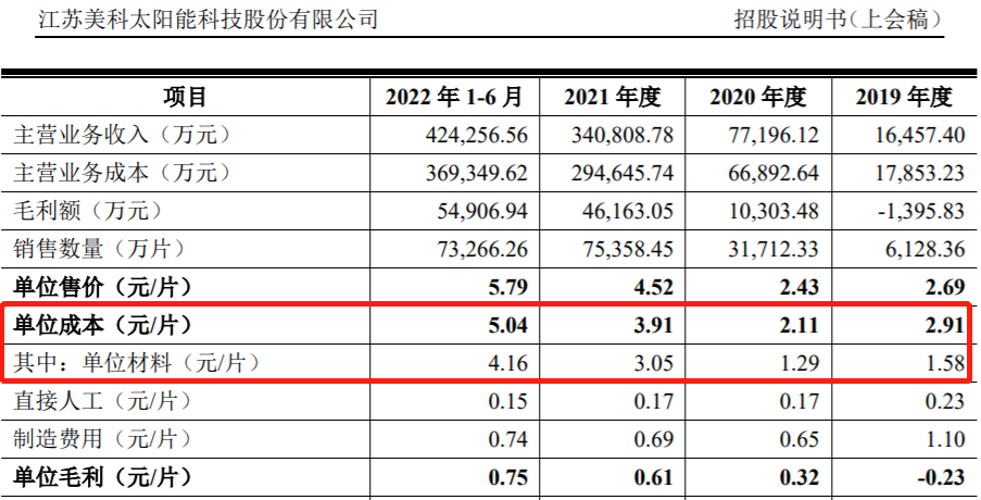 但是美科股份在2022年上半年的主營業務成本金額為36.93億元,以此計算在2022年上半年中材料消耗成本將佔到主營業務生產成本的90%左右,超過了招股書披露的同期單位材料成本佔單位成本的比例。