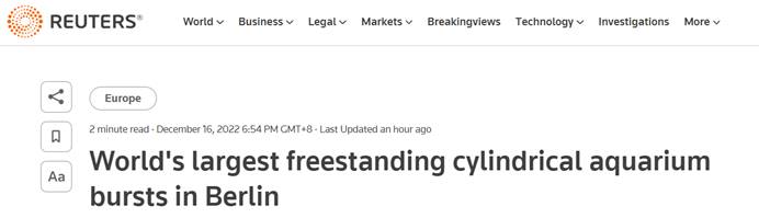 現場曝光!世界最大獨立圓柱體水族館爆裂,柏林消防隊緊急應援