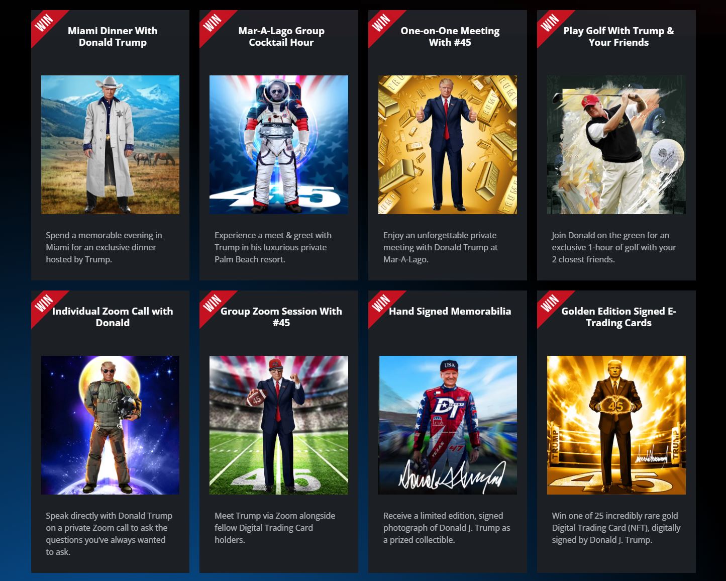 報道稱,特朗普15日正式宣佈時進行了一番吹噓,稱這些NFT數字藏品“展現了有關其生活和事業的驚人藝術”,特朗普將之與棒球卡相比,稱“希望(這些NFT數字藏品)更令人興奮。”這些卡片的售價為每張99美元。