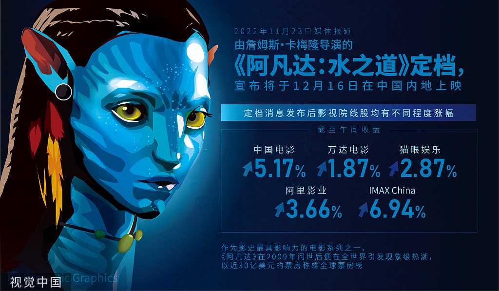 【環球時報綜合報道】年度大片《阿凡達:水之道》(《阿凡達2》)16日在中美公映。自2009年首部《阿凡達》上映之後,導演詹姆斯·卡梅隆又一次把他的“潘多拉星球”呈現在銀幕上,其逼真的視覺特效、植根於種族和家庭情感的故事,以及對當下電影產業發展的意義,都可以體現在第一波搶先觀影的媒體和影迷的口碑之中。