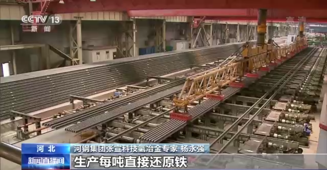 *河鋼集團張宣科技氫冶金專家 楊永強:*我們對工藝中產生的二氧化碳進行捕集和再利用,生產每噸直接還原鐵可捕集二氧化碳約125公斤。氫冶金示範工程標誌着我國鋼鐵行業由“碳冶金”向“氫冶金”的轉變邁出顛覆性、示範性、關鍵性步伐。