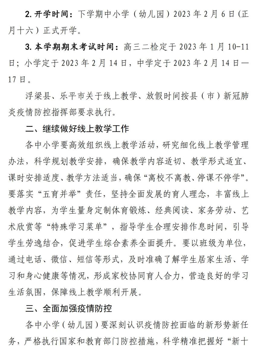 浮梁縣、樂平市關於線上教學、放假時間按縣(市)新冠肺炎疫情防控指揮部要求執行。