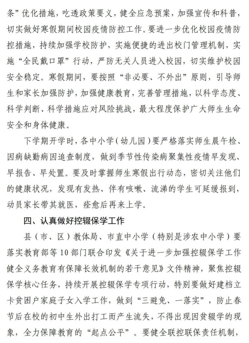 《關於做好2022年秋季學期結束和寒假期間有關工作的通知》