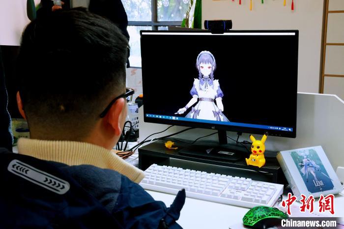 12月14日,台青在元宇宙企業與二次元虛擬主播進行互動。 董曉斌 攝