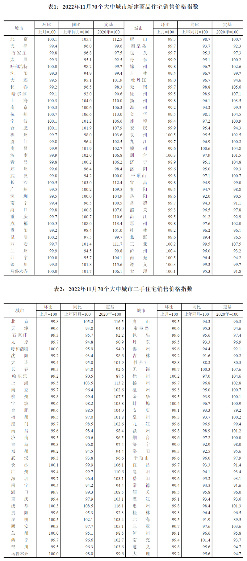 11月份,70個大中城市中,新建商品住宅和二手住宅銷售價格同比下降城市分別有51個和64個,個數均與上月相同。