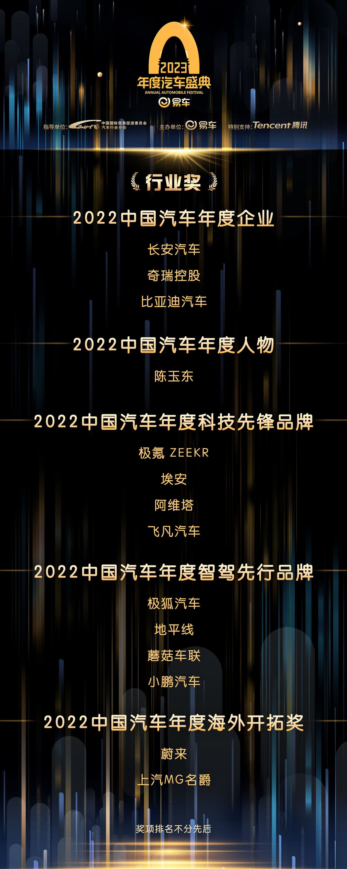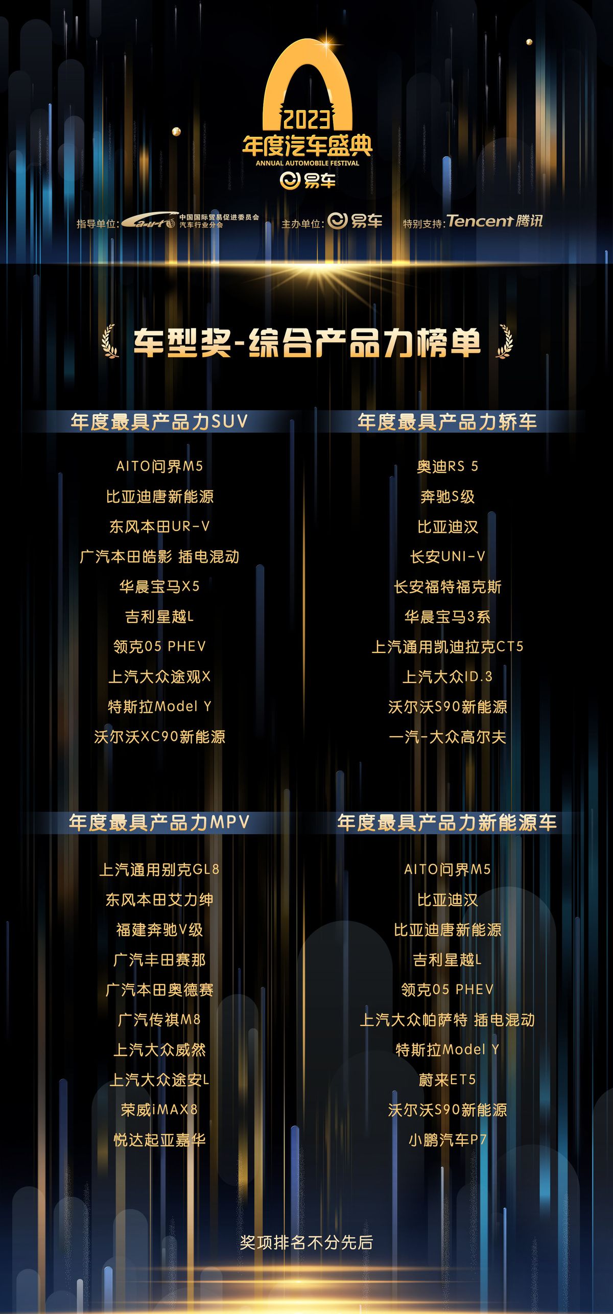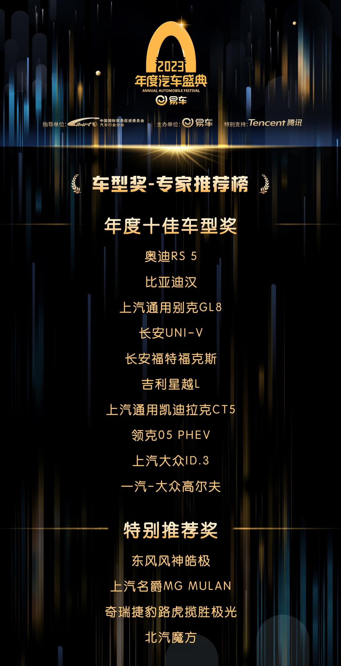 12月16日,由易車主辦,中國國際貿易促進委員會汽車行業分會指導,騰訊特別支持的2023易車年度汽車盛典於線上舉辦。在專家顧問評審團、行業嘉賓等共同的評選與見證下,多項重磅車市大獎揭曉。