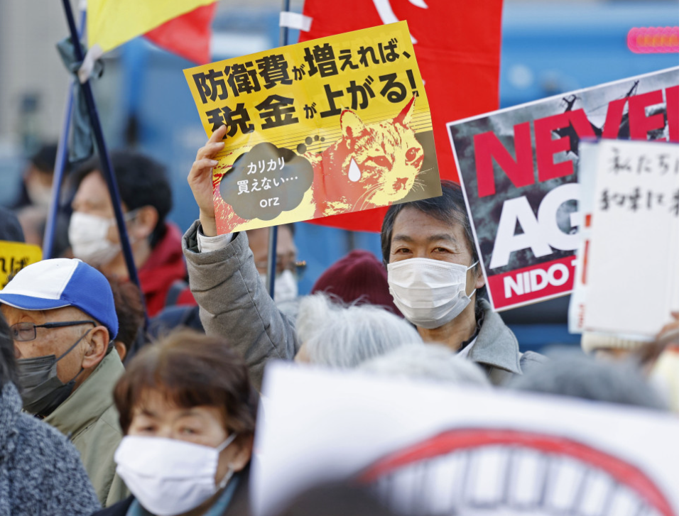 報道還援引東京都北區79歲的抗議者筑紫建彥説法稱:“軍備競賽沒有止境,戰爭的危險性上升。應該通過外交談判,探索美中等相關各國相互妥協之路。”84歲的紀錄片作家鎌田慧當晚還對聚集的大約100名抗議者説:“臨時工正因為找不到工作而受苦”,“增加防衞開支是對戰後民主的拒絕,是絕對不可接受的。”