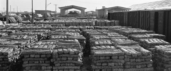 ↑ 1989年2月,湖南、雲南、四川等省專門為西藏人民生產的民族磚茶堆放在青海省格爾木火車站,等待西藏運輸車隊前來裝運。