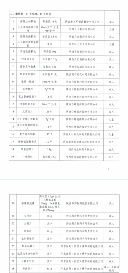 “小兒清熱感康口服液、炎熱清片”等225個藥品列入陝西疫情防控“四類藥品”保供名單