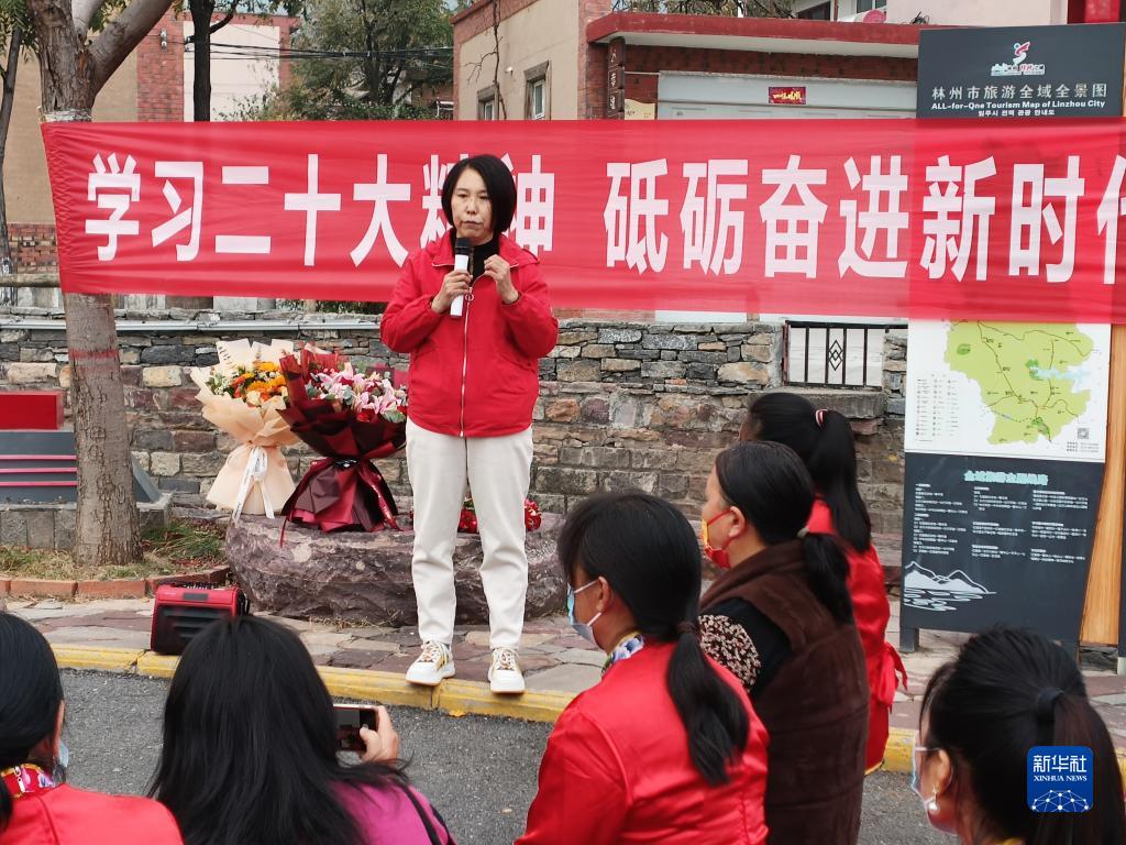 太行山下、紅旗渠畔,河南省林州市黃華鎮廟荒村村口,黨的二十大代表、廟荒村黨支部書記鬱林英和鄉親們坐在一起,分享參加黨的二十大的感受和收穫,謀劃廟荒村未來的發展圖景。