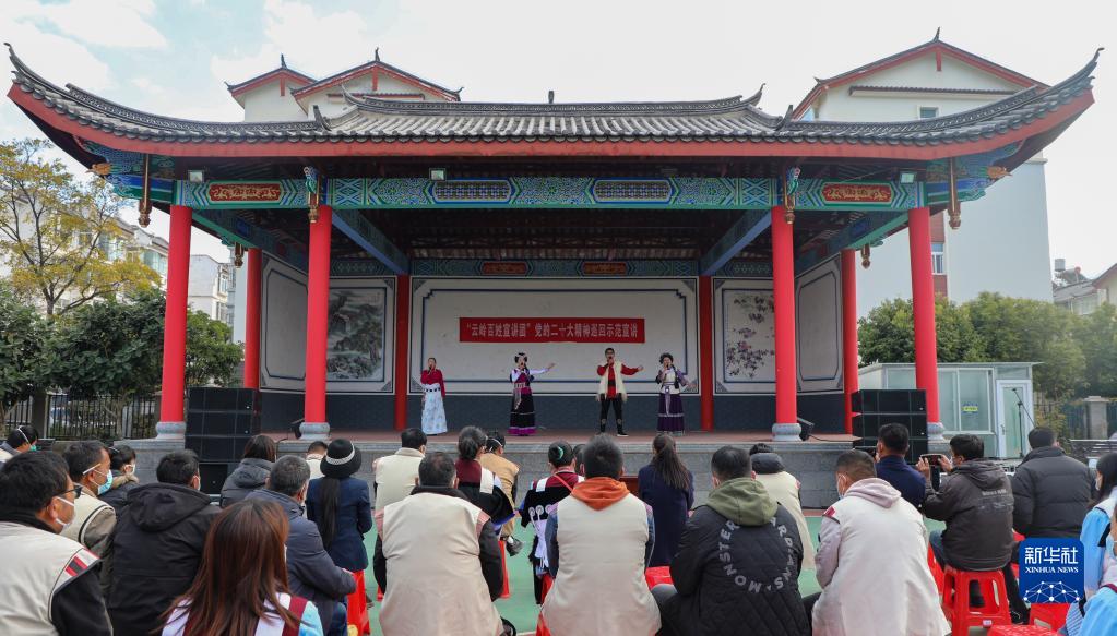 連日來,雲南省依託基層理論宣講示範點、新時代文明實踐中心、縣級融媒體中心等,組建省委宣講團、雲嶺百姓宣講團、志願服務宣講小分隊、文藝輕騎兵等宣講隊伍,深入社區企業、田間地頭、邊境村寨,採取“漢語+少數民族語言”“理論+文藝展演”、院壩會、火塘會等多種形式,開展黨的二十大精神宣講活動。