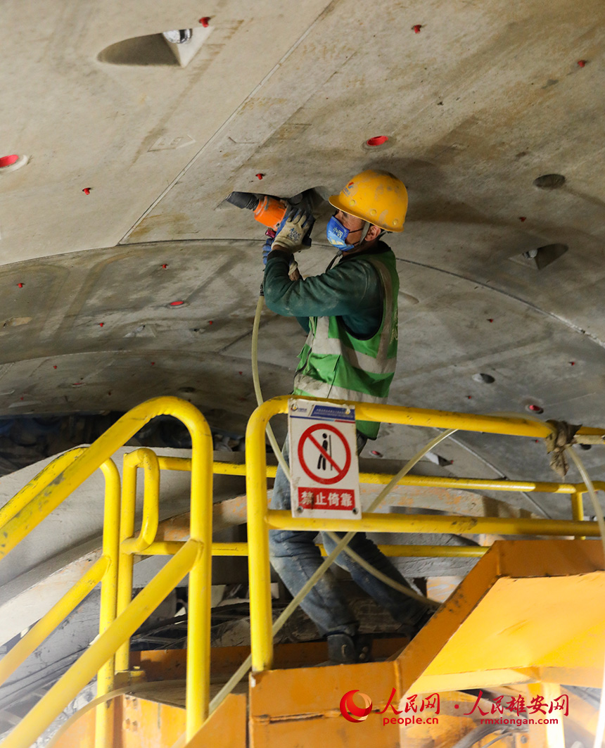 記者12月14日走進位於地下的R1線一標段工程指揮部四分部盾構施工現場,看到工人們正在熱火朝天地忙碌着,以確保項目建設穩步推進。