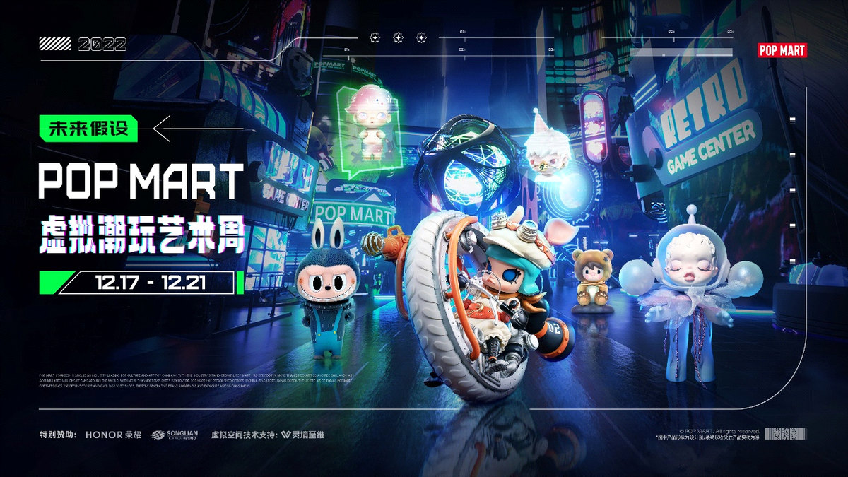 12月17日-12月21日,泡泡瑪特舉辦首屆“未來假設”虛擬潮玩藝術周,這是泡泡瑪特打造的首個虛擬潮玩展,集結了來自全球頭部藝術家的數百件潮玩作品。繼PTS國際潮流玩具展、線上潮玩展之後,泡泡瑪特再次創新潮玩展會形式,用極具科技感的方式為消費者帶來全新的沉浸式逛展體驗。