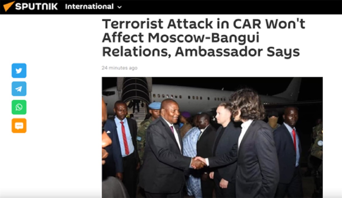 俄衞星社稱,當天晚些時候,俄羅斯外交部譴責了對“俄羅斯之家”負責人的襲擊,稱該襲擊為“犯罪行為”,“顯然是為了阻礙‘俄羅斯之家’在班吉的活動,更廣泛地説,是為了損害我們兩國友好關係的順利發展。”