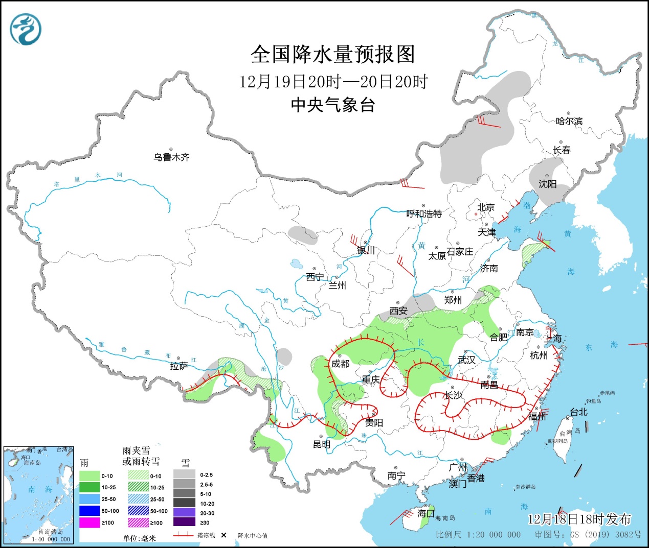 圖4 全國降水量預報圖(12月19日20時-20日20時)