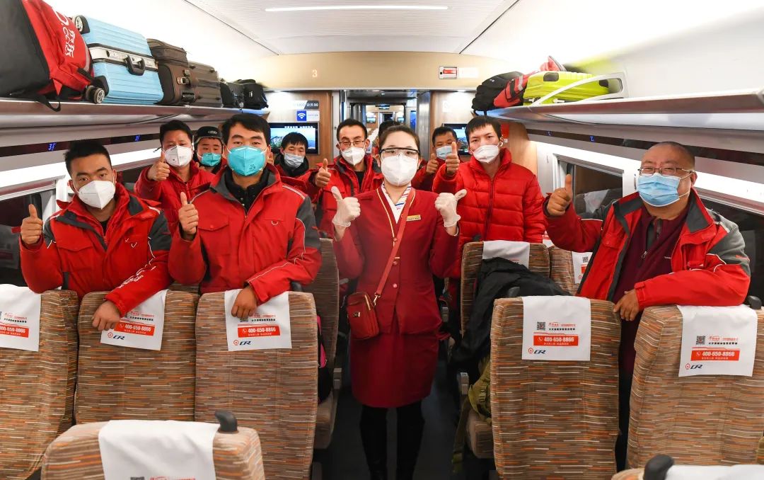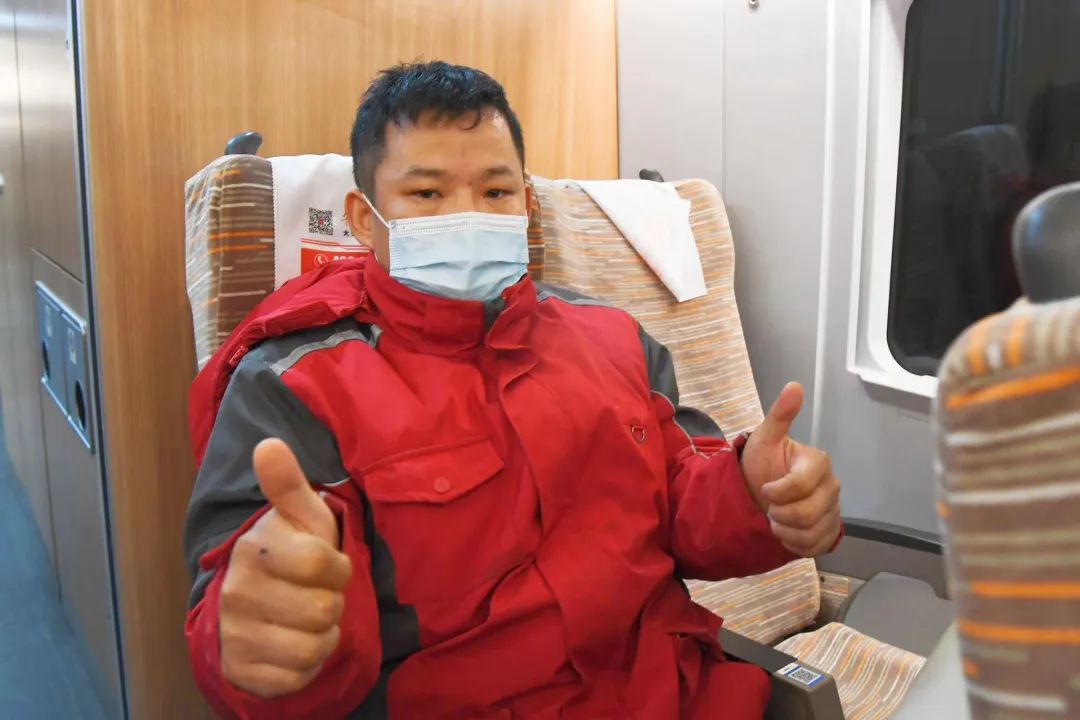 與此同時,7名來自哈爾濱的快遞員也登上了開往北京的G904次列車。