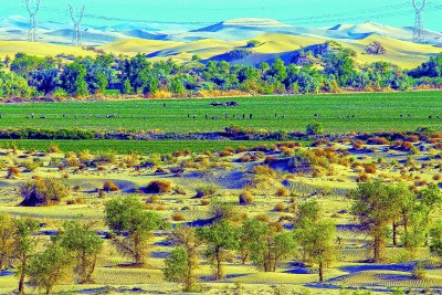 中國棉花看新疆,新疆棉花看兵團。成立初期,兵團突破層層艱難險阻,探索棉花種植,創造了棉花紮根大漠戈壁的奇蹟。幾十年來,經過幾代人的努力,兵團實現了棉花種植從無到有,從窄膜到寬膜再到雙模,從渠灌到膜下滴灌,從智能無人播種施肥到全程機械化採棉……亙古荒原躍起了一片片多姿多彩的綠洲,大漠、胡楊、棉田構成了一道壯闊無比的美麗景觀。