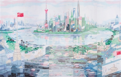中國畫《浦東清晨意象圖》,作者田黎明。