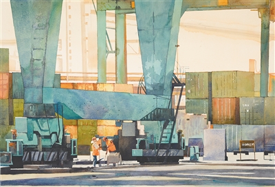水彩畫《廣西北部灣港》,作者吳明翰。